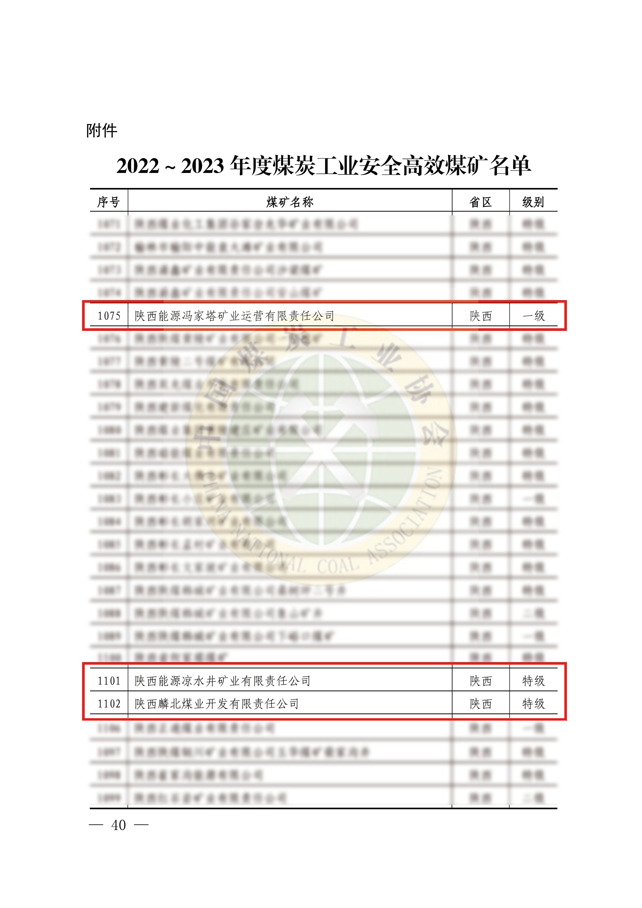 近日,中國(guó)煤炭工業(yè)協(xié)會(huì)命名的2022—2023年度煤炭工業(yè)安全高效煤礦名單中,陜西能源權(quán)屬的涼水井礦業(yè)、麟北煤業(yè)獲評(píng)安全高效特級(jí)煤礦,馮家塔運(yùn)營(yíng)獲評(píng)安全高效一級(jí)煤礦。